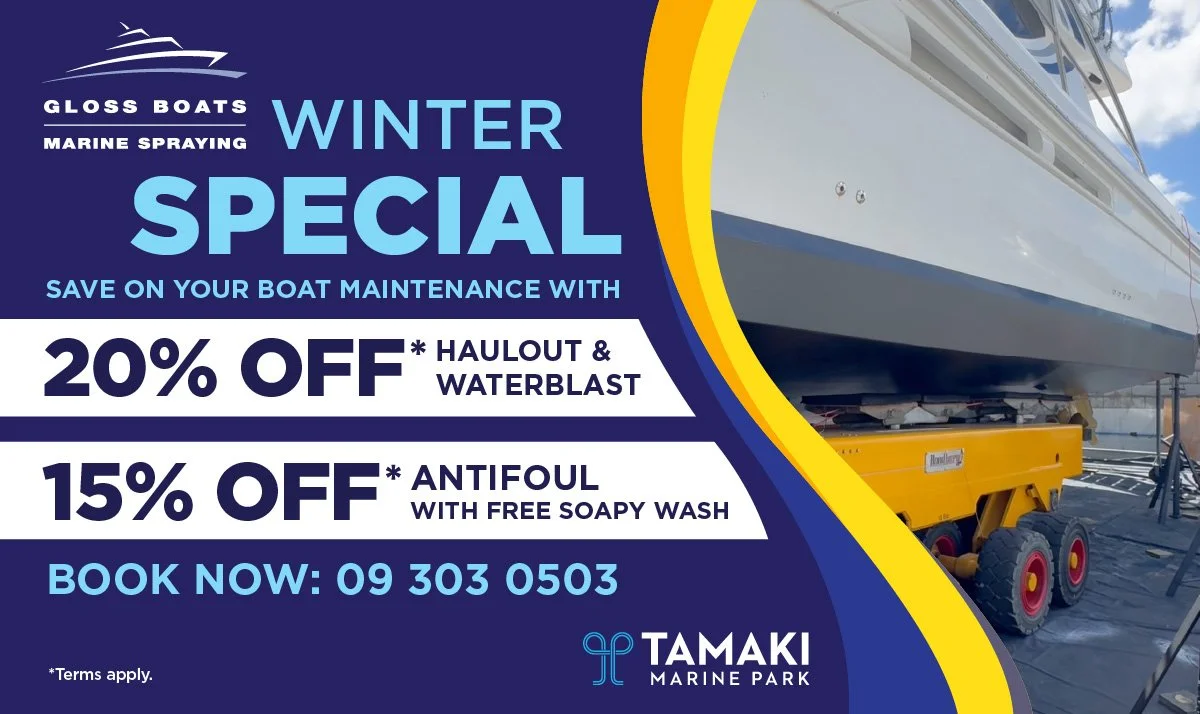20% off Haulout + Waterblasting at Tamaki Marine Park.